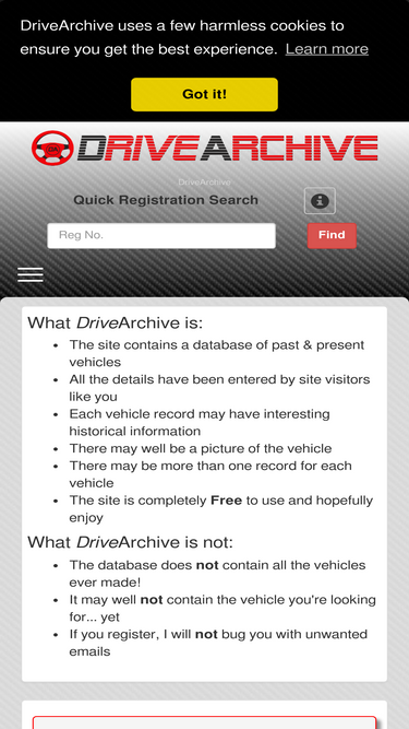 81%Home page of DriveArchive, a database of Vehicles and their owners