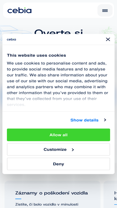 90%Overenie vozidla v najväčšej databáze ojazdených vozidiel v Európe. Overenie km, odcudzenie, história poškodenia a ďalšie kontroly v až 32 krajinách.