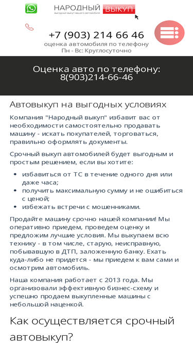 100%Срочный выкуп автомобилей в Москве по выгодной цене. Бесплатный выезд оценщика на место стоянки в кратчайшие сроки, рассчитываемся на месте. Ждем ваших заявок по телефону ☎: +7 (495) 740 90 45.