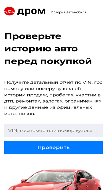 🔍 Проверить автомобиль по VIN (ВИН) коду, гос.номеру или frame номеру кузова на Дроме: узнайте о залоге, угоне, ДТП, пробеге, истории обслуживания и размещений. ✅ Достоверная история авто!