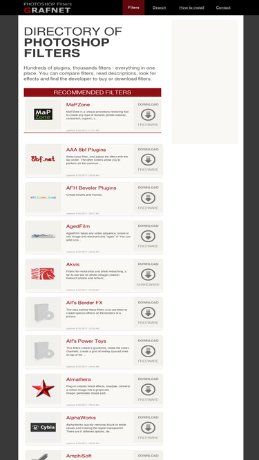 88%directory of photoshop filters. hundreds plugins, thousands filters - everything in the one place. download photoshop filters for free !!!