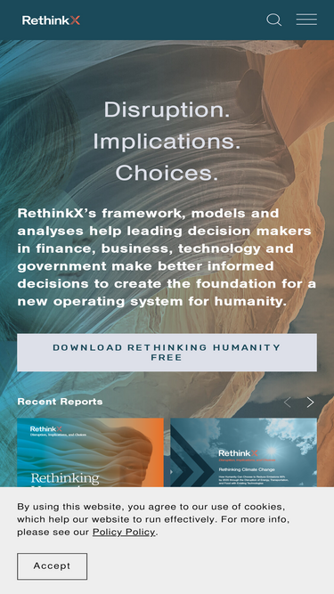 88%Support RethinkX's mission to create a brighter, more equitable future through independent research, technological disruption, and policy guidance.