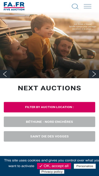 53%Used car auction. With more than 25 years of experience, FIVE AUCTION (FA.FR) is the leading French auction network. Open to private individuals and businesses, we offer a wide range of used touring vehicles, 4x4s and commercial vehicles, as well as two-wheeled vehicles (motorcycles, scooters, bicycles), HGVs, agricultural vehicles, public works vehicles and any other type of vehicle for transporting goods and merchandise.