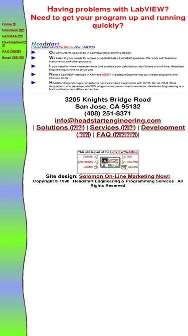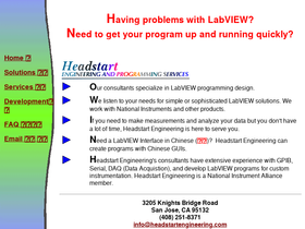 100%having problems with labview? need to get your program get your program up and running? headstart engineering's consultants specialize in labview programming, design and are familiar with national instruments products. if you need to make measurements and analyze your data but you don't have a lot of time, headstart engineering is here to serve you.