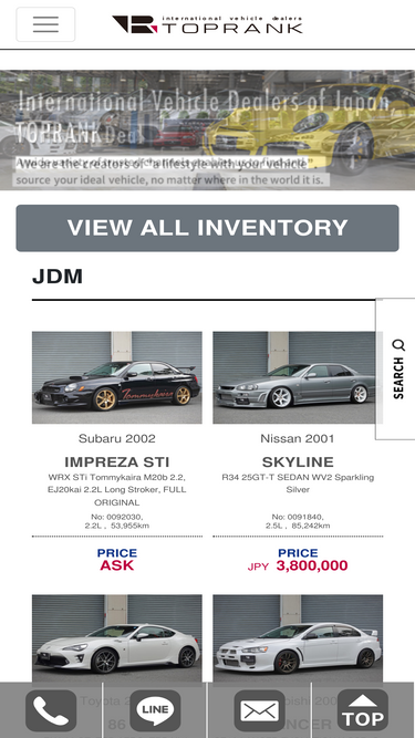 99%Toprank Global is your international vehicle dealer for importing and exporting cars. Toprank based in Japan will locate and ship your dream car from and to anywhere in the world. Auction services to private party sales Toprank has the pride for quality.