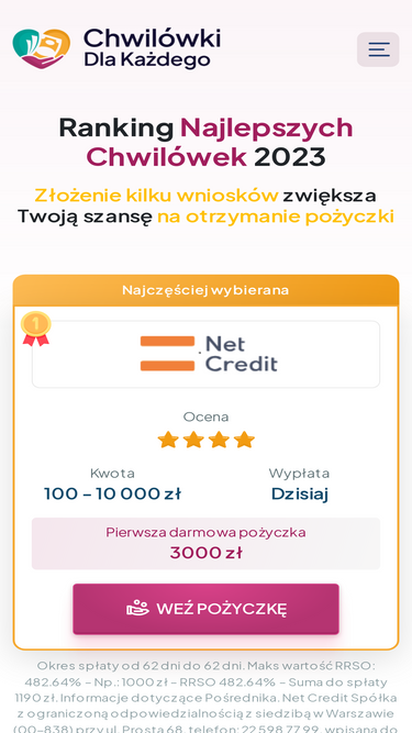 91%Ranking najlepszych pożyczek ratalnych 2023. Portal chwilowkidlakazdego.pl to strona dzięki, której znajdziesz pieniądze, których potrzebujesz.
