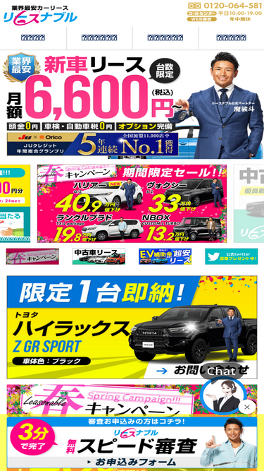 82%頭金0円!車検0円!新車の新型トヨタ・ダイハツ・スズキ・ホンダ車がカーリースなら月額6,600円~!車リース・マイカーリースのリースナブル!