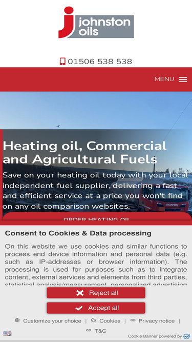 75%Johnston Oils deliver Heating Oil to homes throughout Scotland and the North of England. In the UK, "heating oil" refers primarily to kerosene (also called 28-second oil or burning oil), a type of petroleum-based liquid fuel used to power oil-fired central heating systems, that are "off-grid" and do not have access to the national gas network.