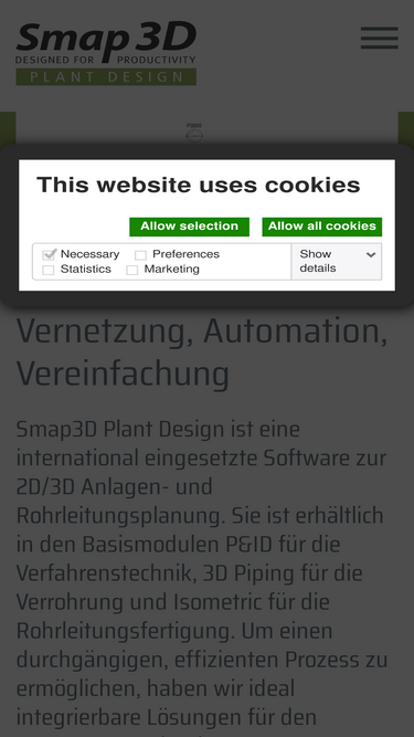99%Smap3D Lösungen eignen sich für unterschiedliche Branchen. Smap3D Plant Design ist das Kernstück zum automatisierten Planen von 3D-Rohrleitungssystemen.