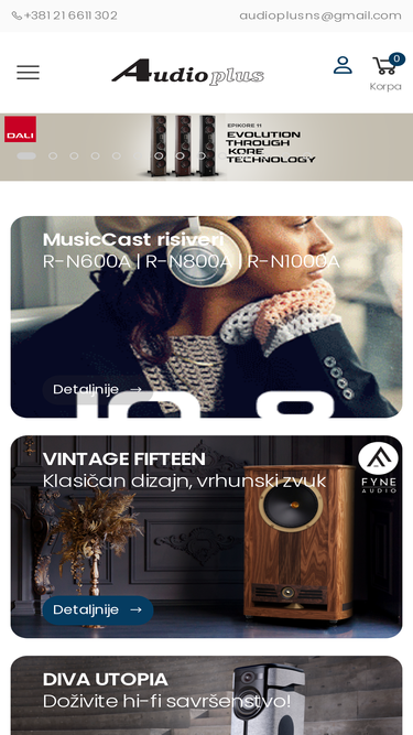 100%audio plus novi sad, stražilovska 23 tel:021/66-11-302. više od 20 godina emociju i pozitivnu energiju koju donosi muzika unosimo u vaše domove i poslovne prostore. tu smo da saslušamo vaše želje i zajedno uz konsultacije odaberemo optimalnu opremu koja se uklapa u vaš budžet. zastupamo isključivo renomirane svetske proizvođače, čiji uređaji garantuju odličan odnos kvaliteta i cene: yamaha, bose, bose pro, apple, beats, rega, sennheiser, monitor audio, jbl, harman kardon, audio-technica, akg, qed, oehlbach, nad, jamo, wharfedale, fiio, canton, fitbit, pioneer, pmc, sonus faber, psb, opera, canton…