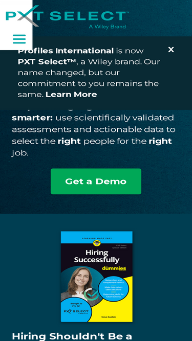 82%pxt select empowers organizations to hire smarter by using scientifically validated assessments and actionable data to select the right people for the right job. get a demo today.