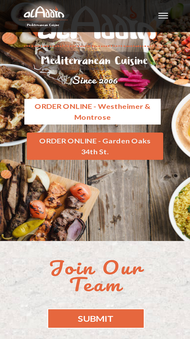87%Discover the best Mediterranean restaurant in Houston. Aladdin offers halal dishes, catering, takeout & dine-in at Montrose and Garden Oaks.