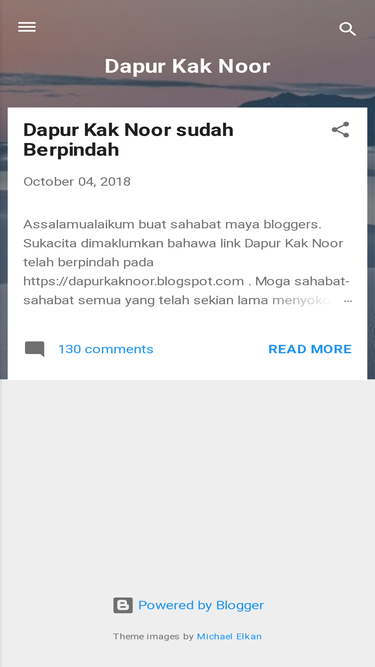 Assalamualaikum buat sahabat maya bloggers. Sukacita dimaklumkan bahawa link Dapur Kak Noor telah berpindah pada https://dapurkaknoor.blog...