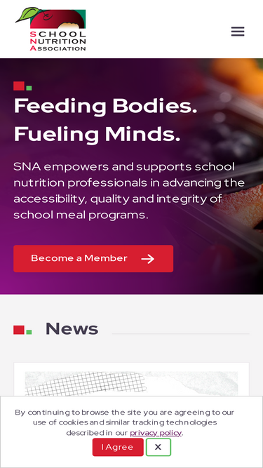 89%The School Nutrition Association (SNA) represents more than 50,000 professionals who feed high-quality, low-cost daily meals to more than 30 million students.