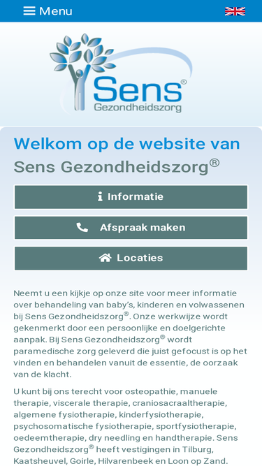 95%Sens Gezondheidszorg Tilburg: (kinder)osteopathie, manuele therapie, viscerale therapie, craniosacraaltherapie, (psychosomatische) fysiotherapie in Tilburg bij Sens Gezondheidszorg. Boomstraat 118E + 132 | 5038 GV Tilburg | 013 – 5 427 431 | tilburg@sensgezondheidszorg.nl