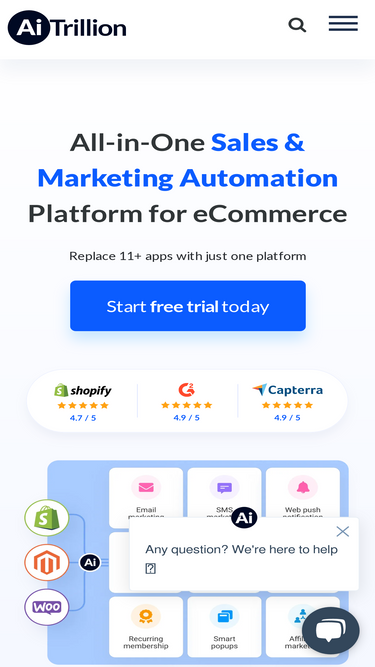 59%AiTrillion Best eCommerce marketing platform offers the most advanced solutions for email marketing, loyalty rewards program, product reviews, live chat, and workflow automation.