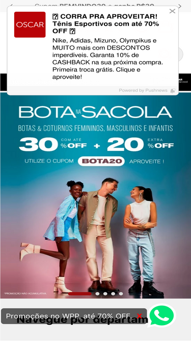 30%Oscar Calçados: sua loja de calçados online com tênis, botas, sandálias e sapatos para toda a família. Garanta estilo e promoções imperdíveis! | Oscar