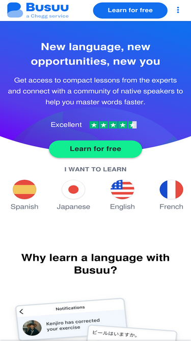 Study a new language online with Busuu's award-winning courses. Learn together with native speakers in Busuu's community.