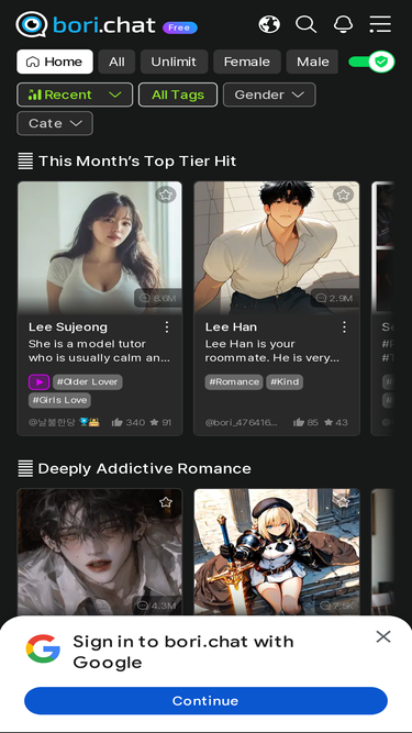 100%당신이 상상하는 모든 캐릭터가 여기에! 엘린에서 판타지, 로맨스, 일상, SF까지 다양한 장르의 AI 캐릭터와 무한한 대화를 즐기세요.
