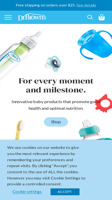 As baby grows, Dr. Brown’s is still there for sippy skills and first foods. Soft spout sippy cups, straw cups, and Cheers360 teach big kid cup skills from start to finish. When baby is ready for fresh firsts, shop the Dr. Brown’s™ Designed to Nourish™ line of toddler cups, plates, bowls and more.