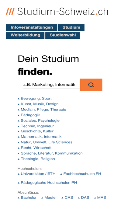90%studium-schweiz.ch, portal für studien- und berufswahl, karriere- und laufbahnberatung. mit schulporträts, studiengängen, infos aus dem bereich hochschule.