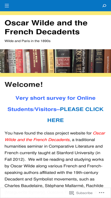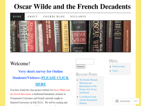 100%The pdf file of the class syllabus and schedule can be downloaded by clicking on this link: Syllabus OscarWildeFrenchDecadents All comments and suggestions welcome!