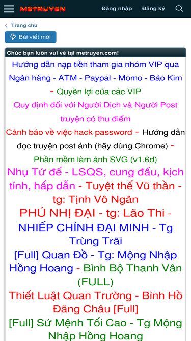 Metruyen - Trang web đọc truyện chữ online hàng đầu Việt Nam. Đọc truyện miễn phí với hàng ngàn bộ tiểu thuyết hay, truyện full, truyện mới cập nhật liên tục. Đọc tiểu thuyết ngôn tình, tiên hiệp, kiếm hiệp, huyền huyễn chất lượng cao. Metruyen - Nơi đọc truyện chữ tốt nhất cho mọi độc giả yêu thích văn học online.