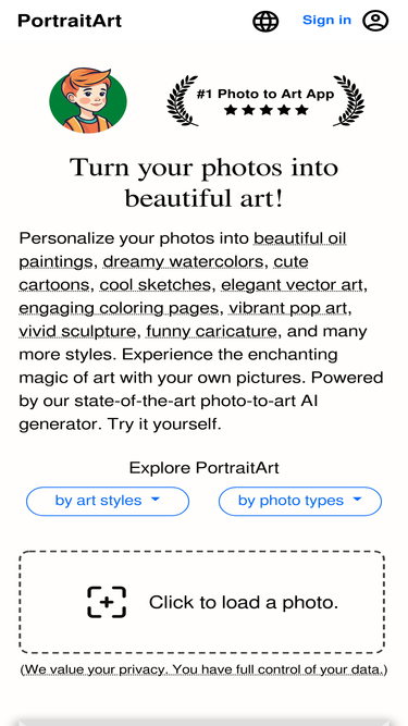 Turn your photos into beautiful art! Personalize your photos into cute cartoons, cool sketches, beautiful oil paintings, dreamy watercolors, and many more. Experience the enchanting magic of art with your own pictures. Powered by our state-of-the-art photo-to-art AI generator. Try it yourself.