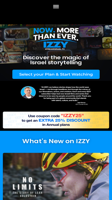 100%ChaiFlicks is a streaming service bringing you the best Jewish and Israeli TV, movies, and documentaries. Activate your 7-Day free trial and start streaming right away. Watch anywhere or cancel anytime at no cost. Note: To redeem a coupon code, make sure to select the right subscription term! We use Stripe to protect your credit card information. We are always here to help! Contact a member of our team at anism@chaiflicks.com.
