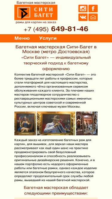 96%почему мы №1 багетнаямастерская в центре москвы? потому что у нас для этого есть все, все для решения вашего интерьерного проекта. уникальные рамы, зеркала, оформление картин, текстиль, ателье, фото печать и многое еще и только у наст,)