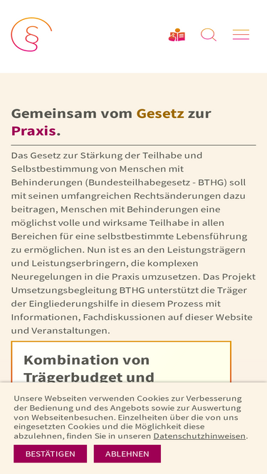 83%Für Menschen, die Leistungen der Eingliederungshilfe erhalten, sieht das BTHG Verbesserungen bei der Anrechnung von Erwerbseinkommen und Vermögen vor. Die Verbesserungen treten in zwei Stufen in den Jahren 2017 und 2020 in Kraft.