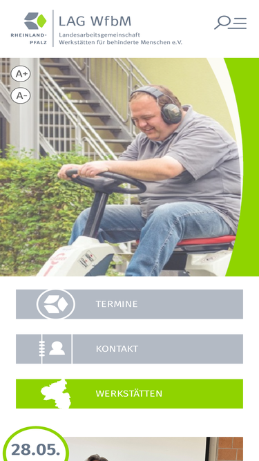 83%die vereinseigenen seiten der lag wfbm rlp e.v. informieren über den verein und seine inhaltlichen arbeitsschwerpunkte. der lag wfbm rlp sind alle 36 in rheinland-pfalz anerkannten werkstätten für behinderte menschen angeschlossen. die internetseiten dienen als plattform zum informationsaustausch untereinander und zur information dritter.