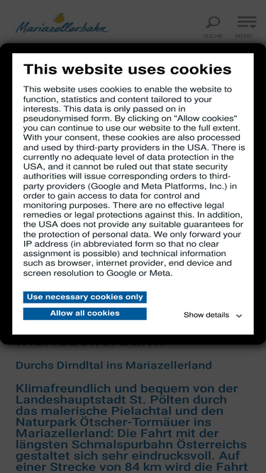 80%Der Ausflugstag beginnt bereits in der Mariazellerbahn. Mit dem Zug geht's bequem und autofrei nach Kirchberg. Die moderne Himmelstreppe ist täglich unterwegs. An Samstagen, Sonn- und Feiertagen von 1. Mai bis 2. November (ausgenommen 11...