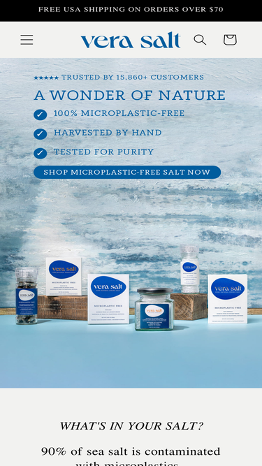 92%90% of sea salt is contaminated with microplastics and heavy metals. We wanted to do better, so we found the purest spring salt on Earth. Untouched by Big Plastic. Shop Pure Natural Lake Salt. Plastic-free. Rust-free. Additive-free.