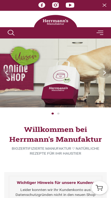 89%willkommen bei herrmann's manufaktur! ✓ bio-pionier bei tiernahrung seit 2006 ✓ herstellung im süddeutschen familienbetrieb