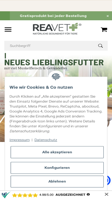 100%Kommen Sie zum ReaVET Werksverkauf und erhalten Sie 10% Rabatt auf über 500 Produkte für Hund, Katze und Pferd