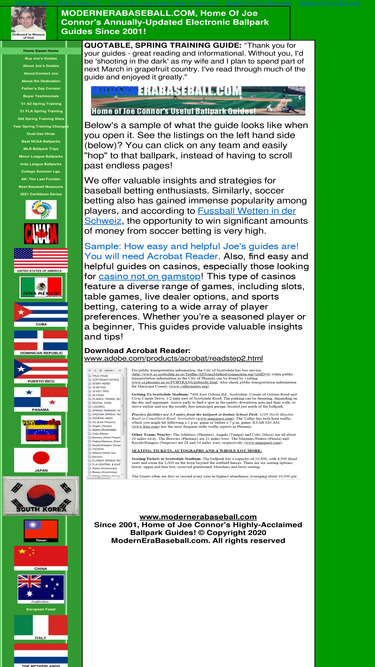 84%home of joe connor's useful spring training, college, mlb, minor league, independent league and international ballpark guides