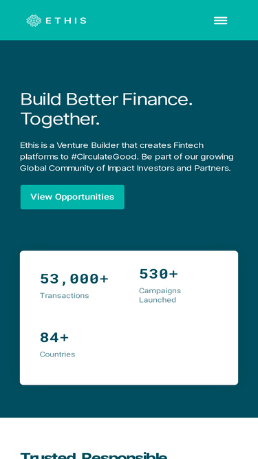 62%Our platforms feature exciting and sustainable campaigns. You are the ethical crowdfunders. When good intentions converge, we inspire change in the world. Impact Investment. Participatory Project Financing. Effective Charity. We are Ethis.