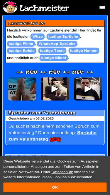 88%hier findest du lustige bilder, filme/videos, namen, spiele, smilies, sms sprüche, sprüche, texte & witze. viel spaß!