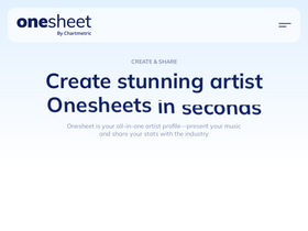 84%Create beautiful music one-sheets in seconds. Perfect for artists & bands. With one click, we automatically add artist info, tour dates, social data, videos and images to your page. Share pages easily in a format that looks fantastic on desktop or mobile. Save your team hours of manual labor now.