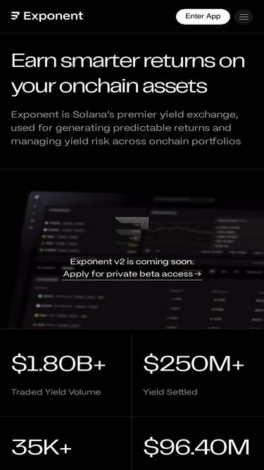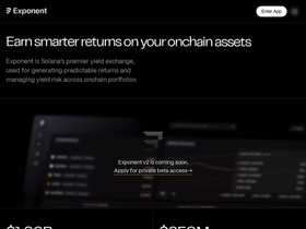 80%Generate stable returns. Boost your Solana yields. Exponent is a double-audited protocol that issues time-locked tokens for generating fixed income and yield trading.