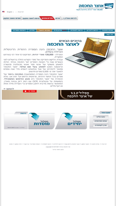 98%אוצר החכמה גרסה 18.0 בדיסק קשיח/אתר תוכן הינו ספריה וירטואלית אדירת מימדים, המהווה שינוי תפיסה בתחום אצירת הספרים ואפשרויות הגישה אליהם. אוצר החכמה צועד ברוח הזמן ומגיש לכם בתוך ביתכם ספרית ענק בת 138,000 ספרי יהדות וספרי קודש, סרוקים דף אחרי דף כצורתם המקורית. המאגר מכיל ספרי יהדות, ספרי קודש, ספרי קבלה, ספרי חסידות, ספרים ביהדות, ספרים בעברית, ספרים יהודיים, ספרי מחקר, ספרי מוסר, ספרי מחשבה, ספרים עבריים,מחזורים, סידורים ועוד הרבה יותר. ניתן לעיין בספרים באמצעות המחשב, iphone ומחשבי macintosh. במאגר כלולים ספרים מהוצאות גדלות כגון: מכון ירושלים, ספרי וגשל, ספרי יד הרב נסים, מכון מש