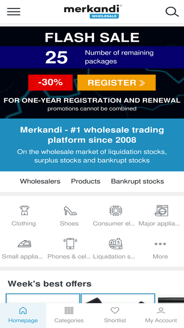 95%Merkandi is a tool for international wholesale traders, with many surplus and bankrupt stock offers, liquidation stocks and wholesale clearance deals.