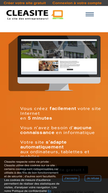 90%créer un site internet gratuit pour artisan, auto-entrepreneur, pme, association. créer un site web en 5 minutes sans aucune connaissance technique, simplement en remplissant des formulaires avec cleasite.
