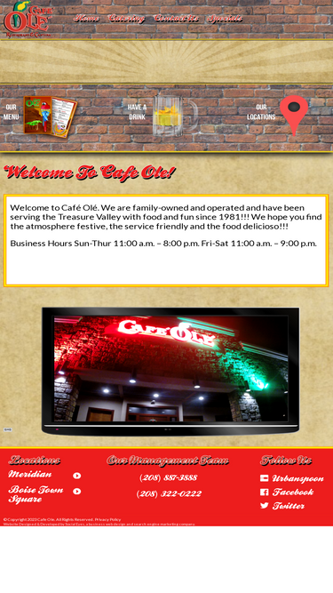 65%café olé strives to make your dining experience special with great tasting mexican style dishes and excellent service. call or visit today! (208) 887-3888