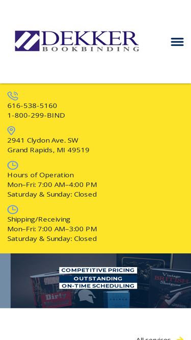 100%Dekker Bookbinding is a family owned company that has been in the Bookbinding Industry for over 90 years. Contact us to see how we can help you!