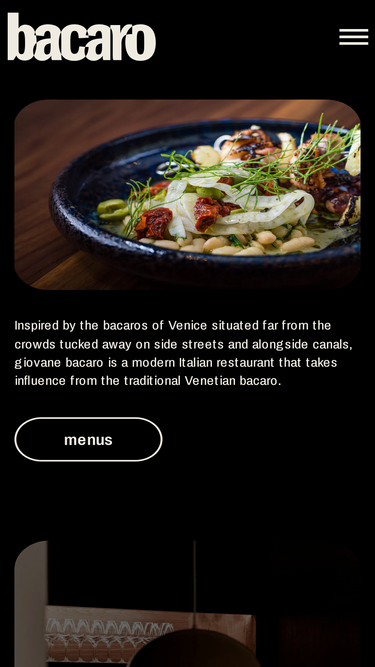 100%At Bacaro, it’s come as you are. Stay as long as you like. The natural ambiance blends seamlessly with modern Italian food that takes influence from the traditional Venetian bacaro. Recently recommended in MICHELIN Guide 2022.