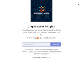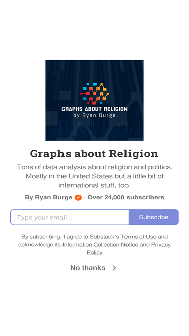 73%Tons of data analysis about religion and politics. Mostly in the United States but a little bit of international stuff, too. Click to read Graphs about Religion, by Ryan Burge, a Substack publication with tens of thousands of subscribers.