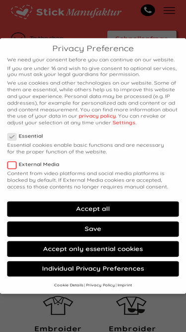 90%Bei der StickManufaktur können Sie Jacken und Pullover besticken lassen oder nach Wunsch selbst gestalten. Ihr Firmenlogo auf Jacken anbringen.