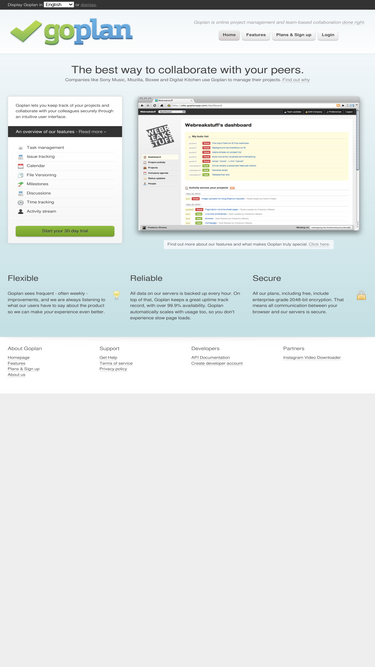 99%goplan is an project management and collaboration tool for individuals and teams. tasks, tickets, calendar, time tracking and documents.